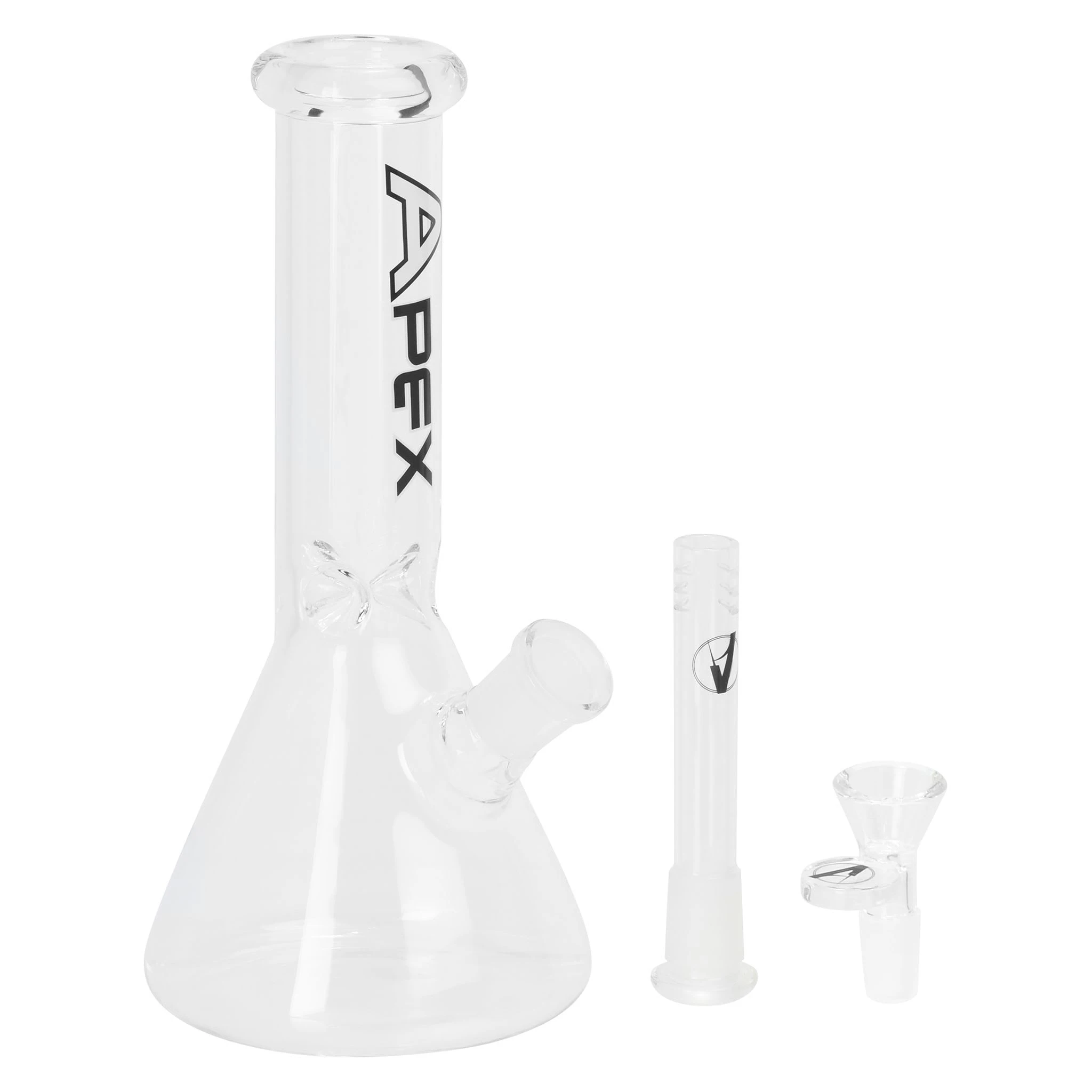 The Apex glass beaker-style water pipe stands 23 cm tall and features a diffused downstem that helps cool vapour for smoother inhalation. Its high-quality, hand-blown borosilicate glass fabrication makes it resistant to shock; and it comes with an ice catcher for smoothness and a pull-out glass bowl for ease of use. All sales are final.